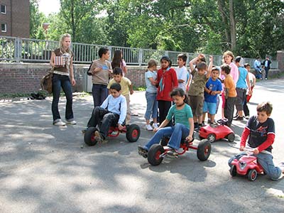 Die 2b veranstaltete Bobbycar- und Kettcarrennen