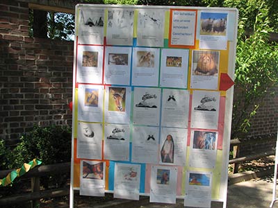 Überall auf dem Hof wurden Arbeitsergebnisse aus dem Unterricht